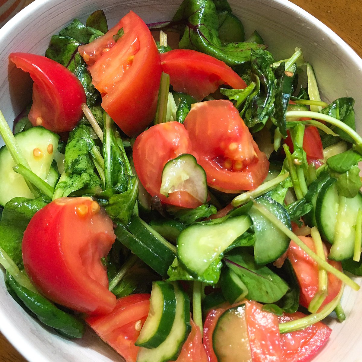 ママがトマトでサラダ作ってくれたよ