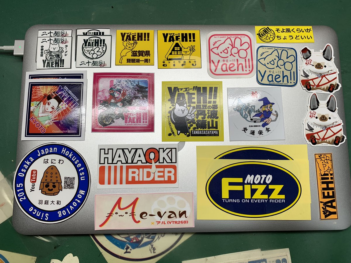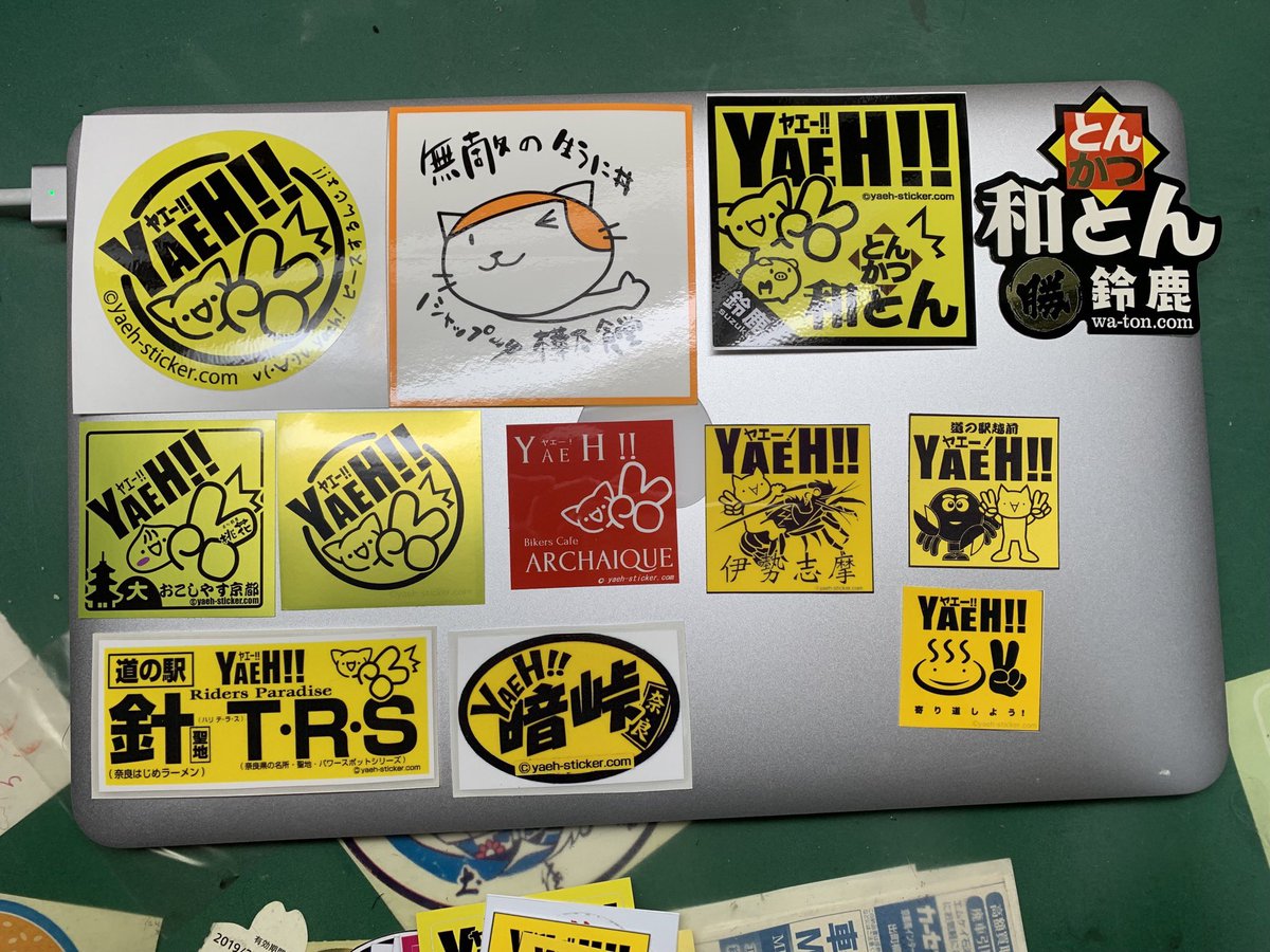 家にあるヤエステやモトブロガーさんステッカー、その他ステッカーを整理がてら広げてみた